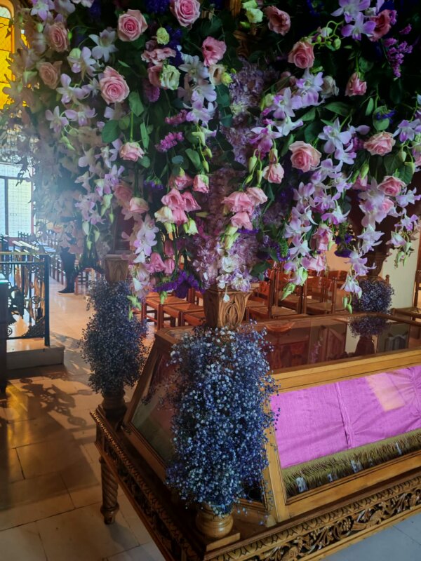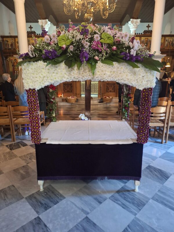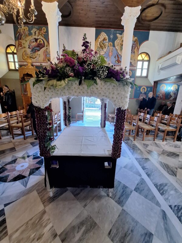 Οι «συνθέσεις» με τα άνθη δημιουργούν ένα εντυπωσιακό αποτέλεσμα, το οποίο δικαιώνει απόλυτα την προσπάθεια όσων συμμετείχαν στον στολισμό.