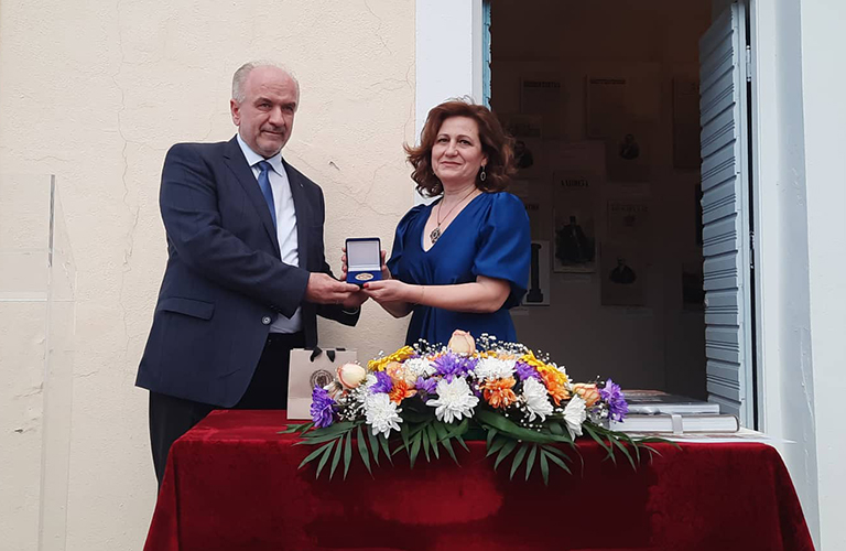 Της απονεμήθηκε το Χρυσό Μετάλλιο της Ιεράς Πόλεως από τον Δήμαρχο, Κώστα Λύρο