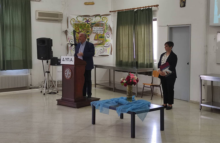 Στη συνέχεια η εκπαιδευτικός της Σχολής κα Ραγκαβά Ευαγγελία ως κεντρική ομιλήτρια της εκδήλωσης ενημέρωσε λεπτομερώς για την επαγγελματική εκπαίδευση και κατάρτιση της Δ.ΥΠ.Α., αλλά και για τον θεσμό της «Μαθητείας» (απασχόλησης των μαθητών σε Επιχειρήσεις του Δημόσιου και Ιδιωτικού Τομέα με αμοιβή, παράλληλα με τις σπουδές τους) το οποίο εφαρμόζει η Δ.ΥΠ.Α. (τέως ΟΑΕΔ) από το 1952 με επιτυχία.