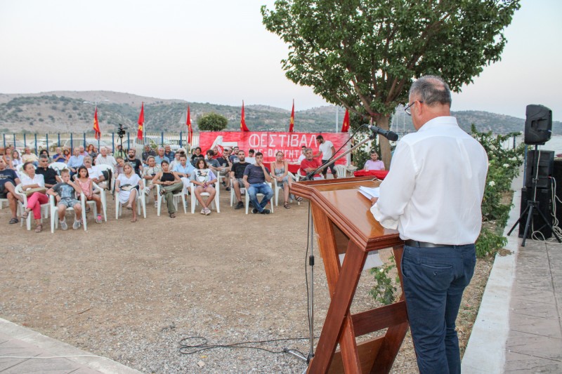 Η εκδήλωση, που πραγματοποιήθηκε της Κυριακή 8 Αυγούστου τηρώντας όλα τα μέτρα προστασίας, ξεκίνησε με χαιρετισμό από το Λεωνίδα Καραγιώργο, μέλος του Τομεακού Συμβουλίου Αιτωλοακαρνανίας της ΚΝΕ. Αναφέρθηκε στη σημασία του συνθήματος του φετινού Φεστιβάλ, «Να ζεις, να τολμάς, να προχωράς – Για την κοινωνία της πραγματικής ελευθερίας, τον σοσιαλισμό» και ευχαρίστησε όσους συνέβαλαν για την πραγματοποίηση της εκδήλωσης.