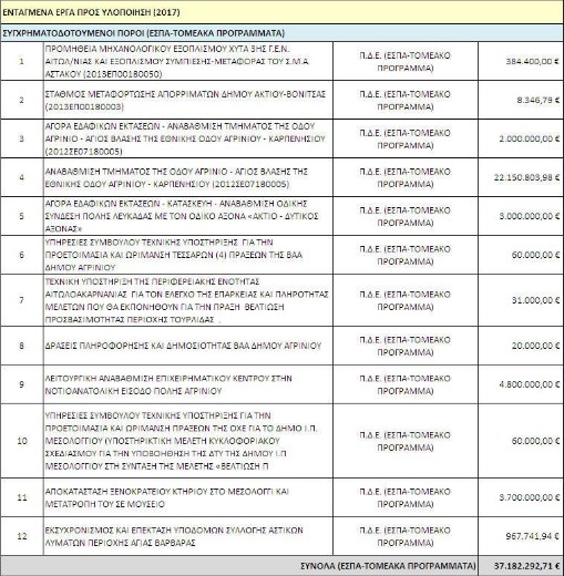 Οι παραπάνω πίνακες δεν αποτελούν το σύνολο των έργων που υλοποιούνται, αλλά μόνο τις κατηγορίες που αναφέρονται.