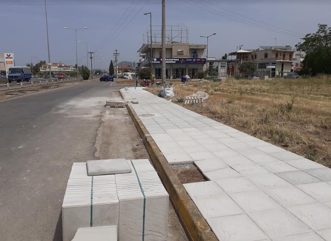 Θα ακολουθήσουν εργασίες διαμόρφωσης και τοποθέτησης πλακών πεζοδρομίου έτσι ώστε να διασφαλίζεται η ομαλή κυκλοφορία.