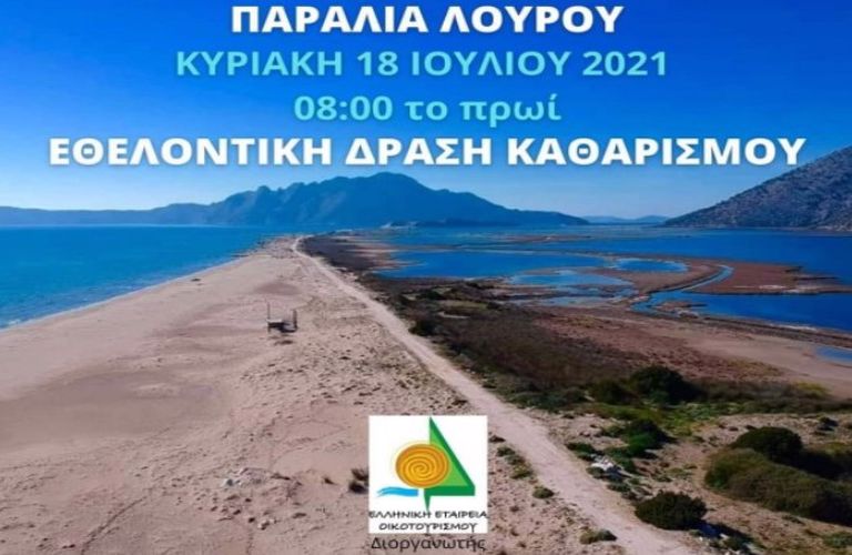 Εθελοντική Δράση Καθαρισμού στην Παραλία Λούρου την ερχόμενη Κυριακή, 18 Ιουλίου 2021 στις 8 το πρωί διοργανώνει η Ελληνική Εταιρεία Οικοτουρισμού με την υποστήριξη του Φορέα Διαχείρισης Λιμνοθάλασσας Μεσολογγίου – Ακαρνανικών Ορέων και τη συνεργασία του Ορειβατικού Χιονοδρομικού Συλλόγου Ι.Π. Μεσολογγίου «Η Βαράσοβα» και άλλων φορέων από το Μεσολόγγι και την Αιτωλοακαρνανία.