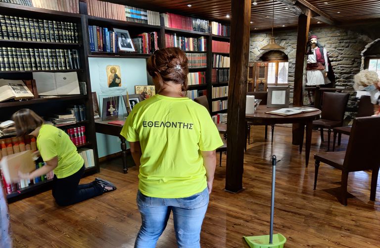 Μέλη της Ακτίνας Εθελοντισμού ανέλαβαν πρωτοβουλία για τον καθαρισμό του περιβάλλοντα χώρου αλλά και του χώρου όπου φιλοξενείται η Κειμηλιοθήκη – Βιβλιοθήκη της Μονής.