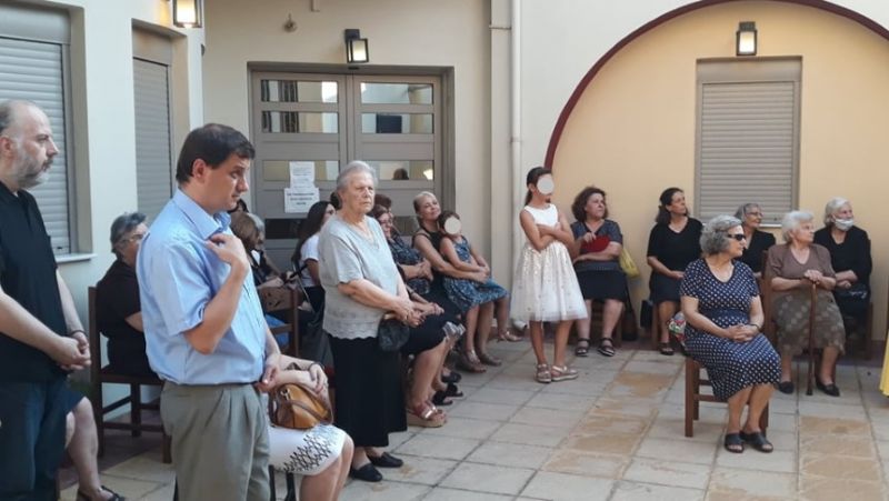 Άρχισε λίγο μετά τις 19:00 το απόγευμα της Παρασκευής, παρουσία αρκετών πιστών, ο Πανηγυρικός Εσπερινός της Εορτής της Κοιμήσεως της Θεοτόκου στον προαύλιο χώρο της Ευαγγελιστρίας, ενώ στην συνέχεια ακολούθησαν ο Επιτάφιος, τα Εγκώμια και η Περιφορά του Επιταφίου γύρω από την Ευαγγελίστρια.