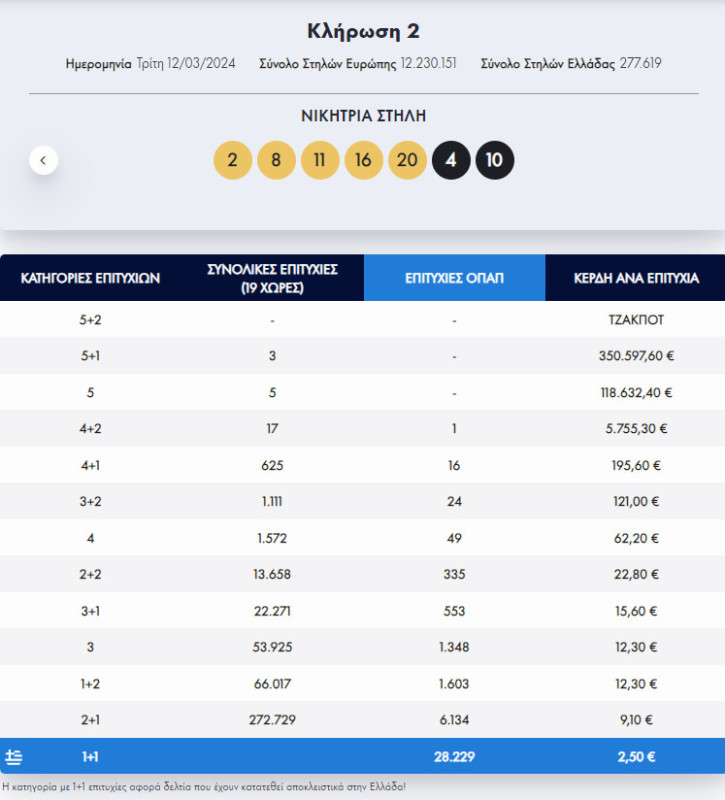 Διαβάστε επίσης: Eurojackpot: Ένας υπερτυχερός κέρδισε πάνω από 30 εκ. ευρώ – Οι νικητές στην Ελλάδα