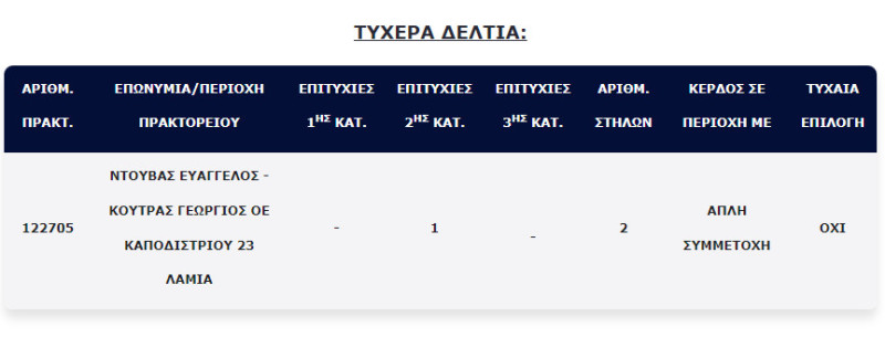 Ο τυχερός ή η τυχερή έπαιξε δύο στήλες συνολικής αξίας 5 ευρώ με αριθμούς δικής του/της επιλογής και όπως αποδείχθηκε έκανε πάρα πολύ καλά.