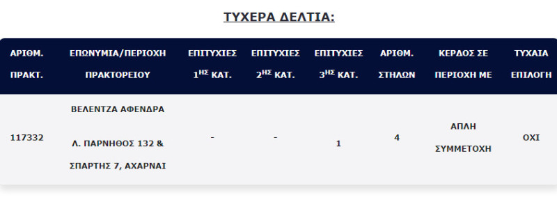 Ο νικητής ή η νικήτρια έπαιξε τέσσερις στήλες με αριθμούς χωρίς τυχαία επιλογή και μία από αυτές σε μεγάλο βαθμό απέδωσε… καρπούς.
