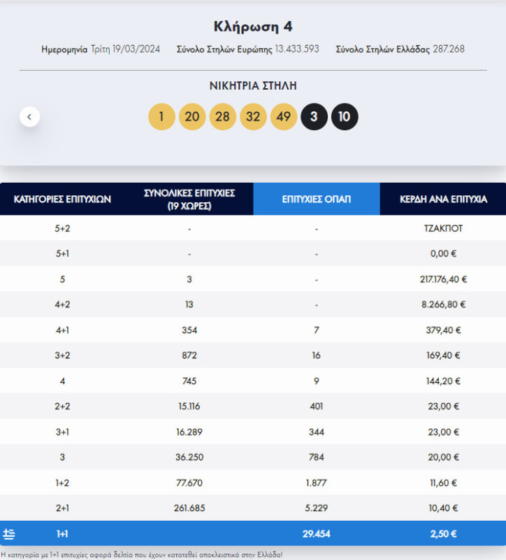Eurojackpot: Τζακ-Ποτ στις δύο πρώτες κατηγορίες για τις υπόλοιπες χώρες της Ευρώπης, ενώ στην Ελλάδα δε βρέθηκε νικητής στις τέσσερις