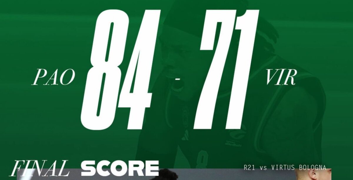 Για την 21η Αγωνιστική της Euroleague Basketball ο Παναθηναϊκός Aktor κέρδισε με 84-71 τη Βίρτους Μπολόνια και επέστρεψε στις νίκες ανεβαίνοντας στο 13-8 της κανονικής διάρκειας.