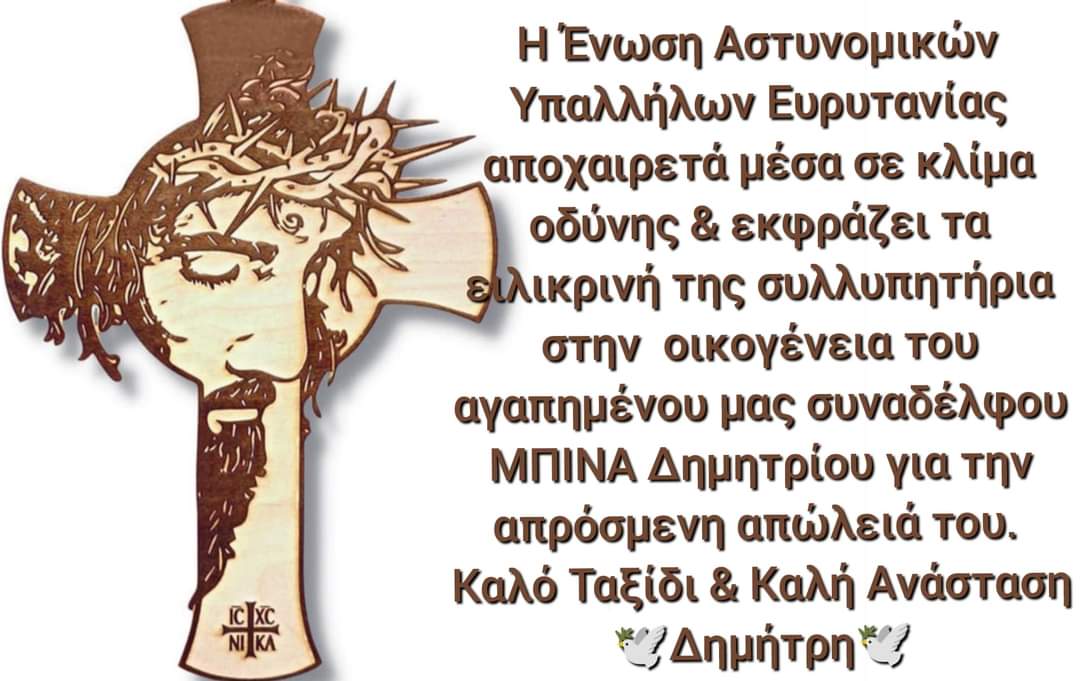 Η Ένωση Αστυνομικών Υπάλληλων Ευρυτανίας εξέφρασε τη θλίψη των μελών της για την απρόσμενη απώλεια του αγαπημένου συναδέλφου τους και τα συλλυπητήριά τους στην οικογένεια.