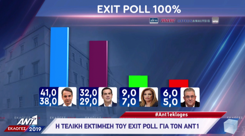 Exit Poll 100%: Ν.Δ. 38% έως 41% και ΣΥ.ΡΙΖ.Α. 29% έως 32%