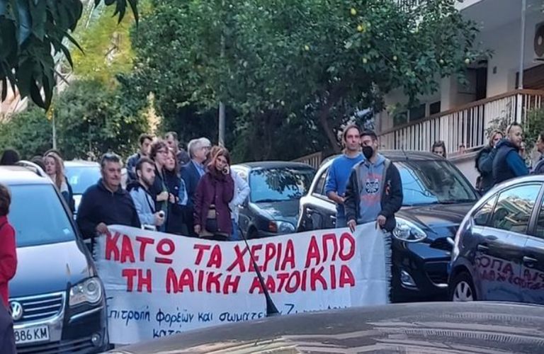 Ακολούθησαν σκηνές με άνδρες μεταφορικής εταιρίας να καταγράφουν και να απομακρύνουν τα πράγματά της ενώ έξω από το σπίτι από νωρίς το πρωί είχαν συγκεντρωθεί ένοικοι της πολυκατοικίας και αλληλέγγυοι, προκειμένου να της συμπαρασταθούν.