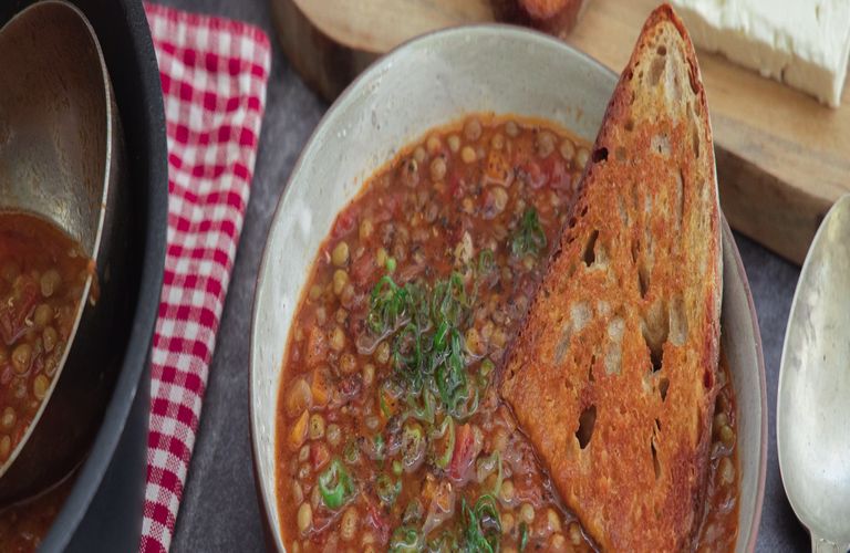 *Ένας παραδοσιακός γευστικός συνδυασμός στο σερβίρισμα για τις φακές είναι η φέτα, το φρυγανισμένο ψωμί και οι ελιές.