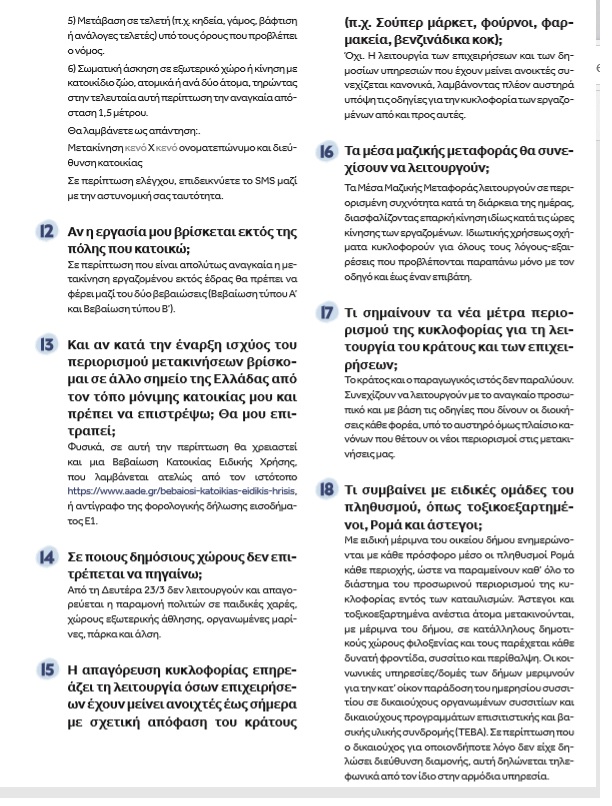 Η κυκλοφορία των εργαζόμενων θα επιτρέπεται μόνο στην εργασία τους και τις εργάσιμες ωρες.