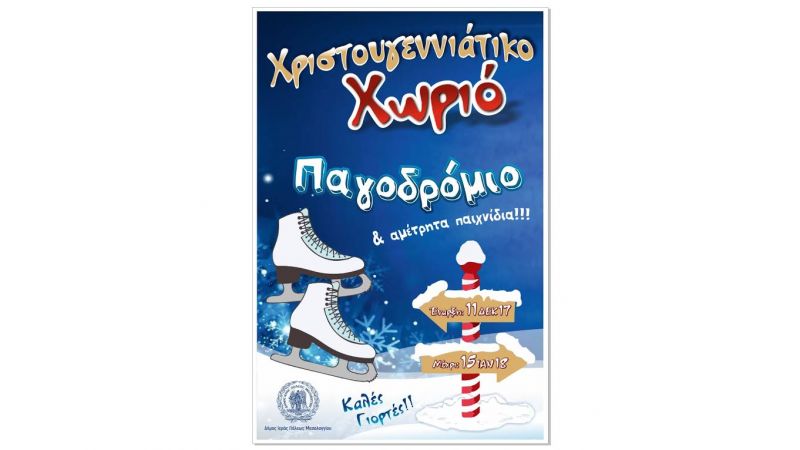 Στην κεντρική πλατεία καθ’ όλη τη διάρκεια των εορτών το Χριστουγεννιάτικο χωριό θα φιλοξενεί καθημερινά τα παιδιά, ενώ στον ίδιο χώρο θα λειτουργήσει παγοδρόμιο.