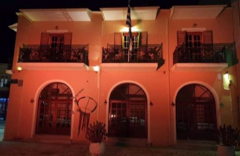 Φωταγωγήθηκε το Δημαρχείο Παλαίρου και το Δημαρχείο Βόνιτσας με πορτοκαλί χρώμα (Photos)