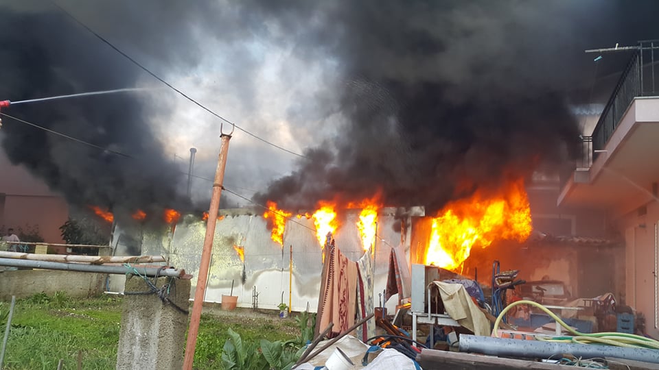 Φωτιά σε γκαράζ στην Πλαγιά κατέστρεψε μηχανάκια και μηχανήματα (Photos)