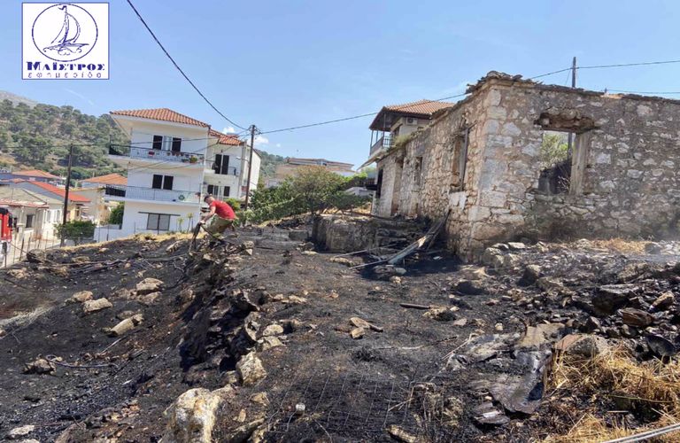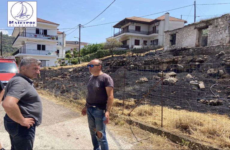 Άνδρες της Πυροσβεστικής και κάτοικοι της περιοχής παραμένουν στο σημείο υπό τον φόβο πιθανής αναζωπύρωσης.