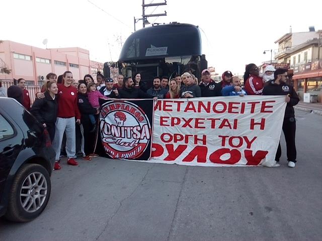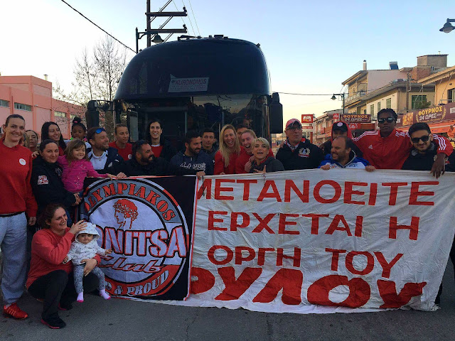 Υποδοχή της γυναικείας ομάδας μπάσκετ του Ολυμπιακού από την ΘΥΡΑ 7 ΒΟΝΙΤΣΑΣ που σταμάτησαν το πούλμαν με τις νταμπλούχες που κατευθύνονταν για την Λευκάδα!!!