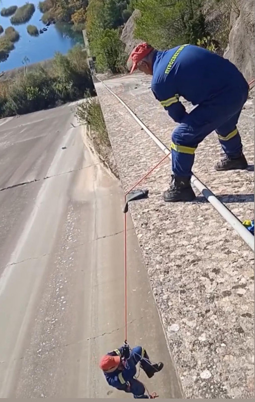 Η επιχείρηση των πυροσβεστών ήταν δύσκολη λόγω του ύψους και της ιδιαιτερότητας του χώρου και η κατάβαση-ανάβαση έγινε με την χρησιμοποίηση σχοινιών.