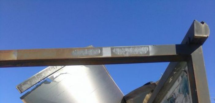 Η μεταλλική κατασκευή και το πλαστικό υλικό που σκέπαζε την στάση για να προστατεύονται οι επιβάτες από τη βροχή παρασύρθηκε από τον αέρα και έφυγε από τη θέση του. Προς το παρόν δεν το έχει απομακρύνει από εκεί κάποιος υπεύθυνος με αποτέλεσμα να υπάρχει μεγάλος κίνδυνος τόσο για τους επιβάτες όσο και για τους διερχόμενους οδηγούς αφού τα κομμάτια του πλαστικού σπάνε και πετάγονται σε απόσταση. Είναι ανάγκη να επιληφθεί κάποιος του θέματος για να μην υπάρξει ατύχημα και επιπλέον η αντικατάστασή του να γίνει από καλύτερο υλικό για να μην επαναληφθούν τα ίδια μέσα στο χειμώνα.
