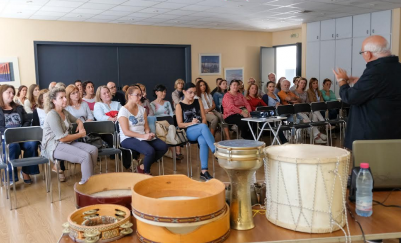 Κατά τη διάρκεια της επίσκεψης και μετά το καλωσόρισμα της Διευθύντριας του Σχολείου κας Μπεκούλη, πραγματοποιήθηκε εκ μέρους του κου Λ. Λιάβα και της κας Ν.Τουμπακάρη μια δίωρη εκπαιδευτική διαδικασία σε όλους τους μαθητές του σχολείου σχετικά με την Ελληνική Μουσική Παράδοση.