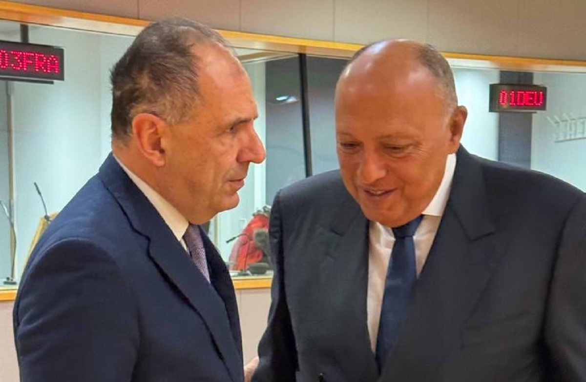 Ο Υπουργός Εξωτερικών Γιώργος Γεραπετρίτης καλωσόρισε σήμερα τον Αιγύπτιο Υπουργό Εξωτερικών Σάμεχ Σούκρυ στο πρόγευμα των Υπουργών Εξωτερικών της ΕΕ.