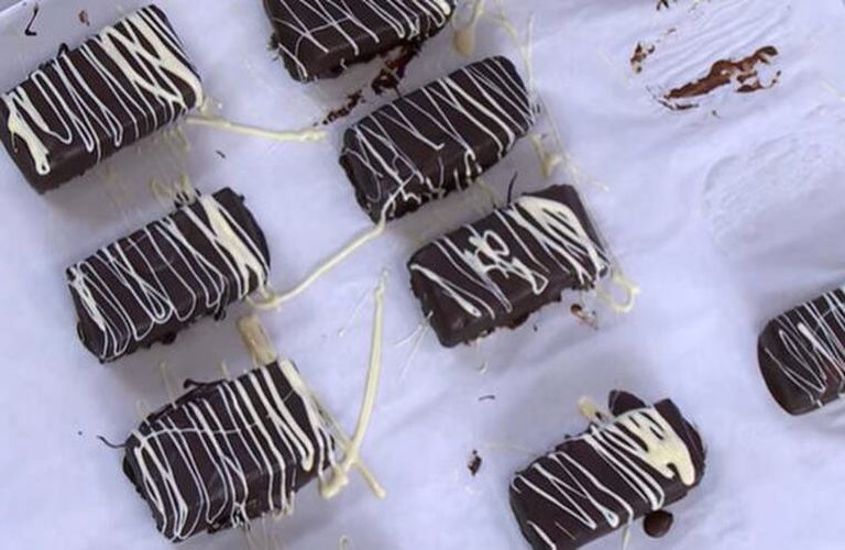 - Κόβουμε σε μπάρες και βουτάμε στη λιωμένη κουβερτούρα. Αφήνουμε σε λαδόκολλα για να σταθεροποιηθεί.