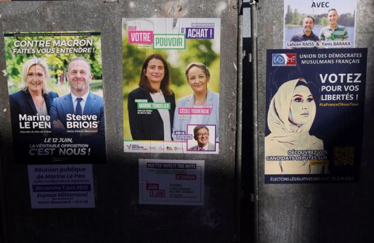 Ο πρόεδρος Εμανουέλ Μακρόν απέχει πολύ από το να εξασφαλίσει την απόλυτη πλειοψηφία στην Εθνοσυνέλευση, παρότι ο συνασπισμός του αναμένεται να παραμείνει πρώτη δύναμη στη Γαλλία, μετά τον πρώτο γύρο των βουλευτικών εκλογών που χαρακτηρίστηκε από την ισχυρή άνοδο της ενωμένης αριστεράς και της ακροδεξιάς (στη φωτογραφία του Reuters/Pascal Rossignol, επάνω, προεκλογικές αφίσες σε δρόμο της μικρής πόλης Ενίν Μπομόν, στη βόρεια Γαλλία).