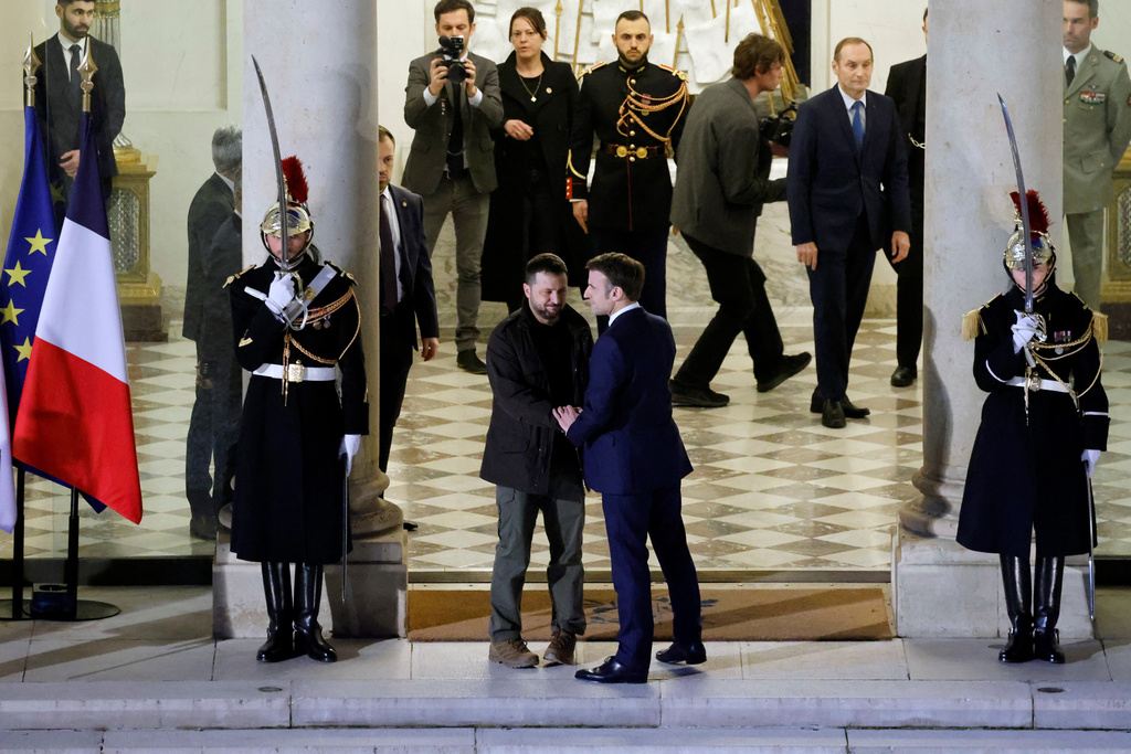 Από πλευράς του, ο πρόεδρος Ουκρανίας εξέφρασε την ευγνωμοσύνη του απέναντι στη Γαλλία και ανέφερε ότι η χώρα του καθημερινά αντιμετωπίζει πολιτικά εγκλήματα από την πλευρά της Ρωσίας. Αναφερόμενος στον θάνατο του Ναβάλνι, ο Ζελένσκι δήλωσε ότι ο Πούτιν είναι ένας δολοφόνος και αιματοβαμμένος δικτάτορας.
