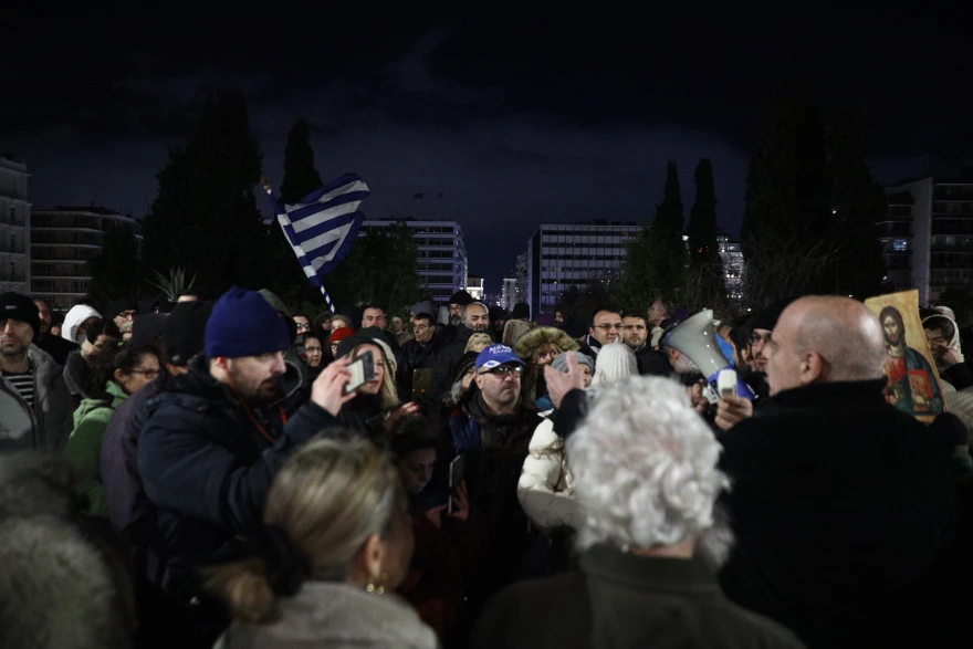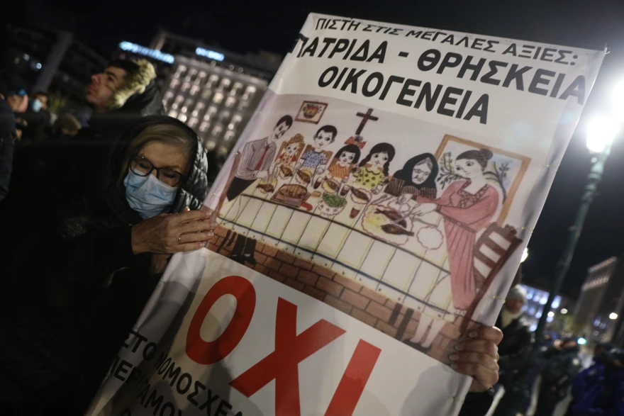 Στο Σύνταγμα συγκεντρώθηκαν διαμαρτυρόμενοι για το νομοσχέδιο που αφορά στον γάμο των ομόφυλων ζευγαριών.