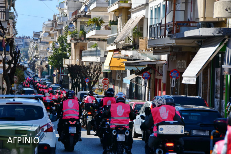 Με σύνθημα «ΚΑΤΩ ΤΑ ΧΕΡΙΑ ΑΠΟ ΤΑ ΚΟΡΙΤΣΙΑ», τα «ροζ γιλέκα» πήραν τους δρόμους ξεκινώντας από το Αγρίνιο, με στάσεις σε Μεσολόγγι, Ναύπακτο, Αίγιο και τερμάτισαν τη μοτο-πορεία (αλλά όχι τον αγώνα για τα δικαιώματα των γυναικών) στην Πάτρα.