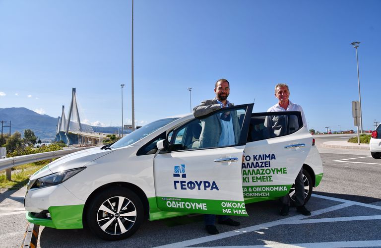 Επίλογος της επίσκεψης ήταν η δοκιμή οδήγησης του πρώτου ηλεκτρικού οχήματος του στόλου της Γέφυρας από τον Αντιπεριφερειάρχη κ. Δημητρογιάννη, με επιβάτες τον Περιφερειάρχη και τον Πρόεδρο της ΓΕΦΥΡΑ Α.Ε.