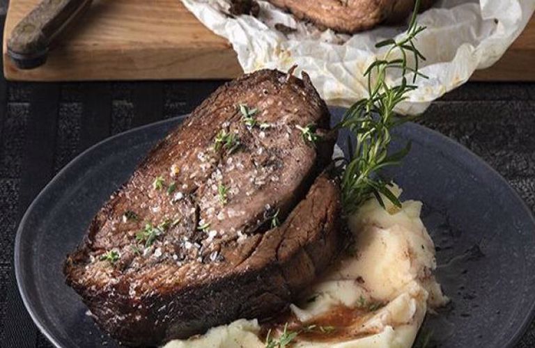 Σερβίρουμε με τον πουρέ, θυμάρι, δεντρολίβανο, πιπέρι και αλάτι.