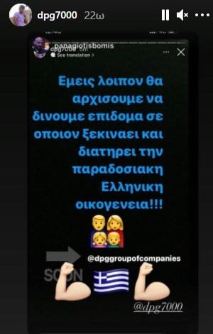 «Εμείς λοιπόν θα αρχίσουμε να δίνουμε επίδομα σε όποιον ξεκινάει και διατηρεί την παραδοσιακή ελληνική οικογένεια!», γράφει ο «DPG», καθιστώντας σαφείς τις προθέσεις του.