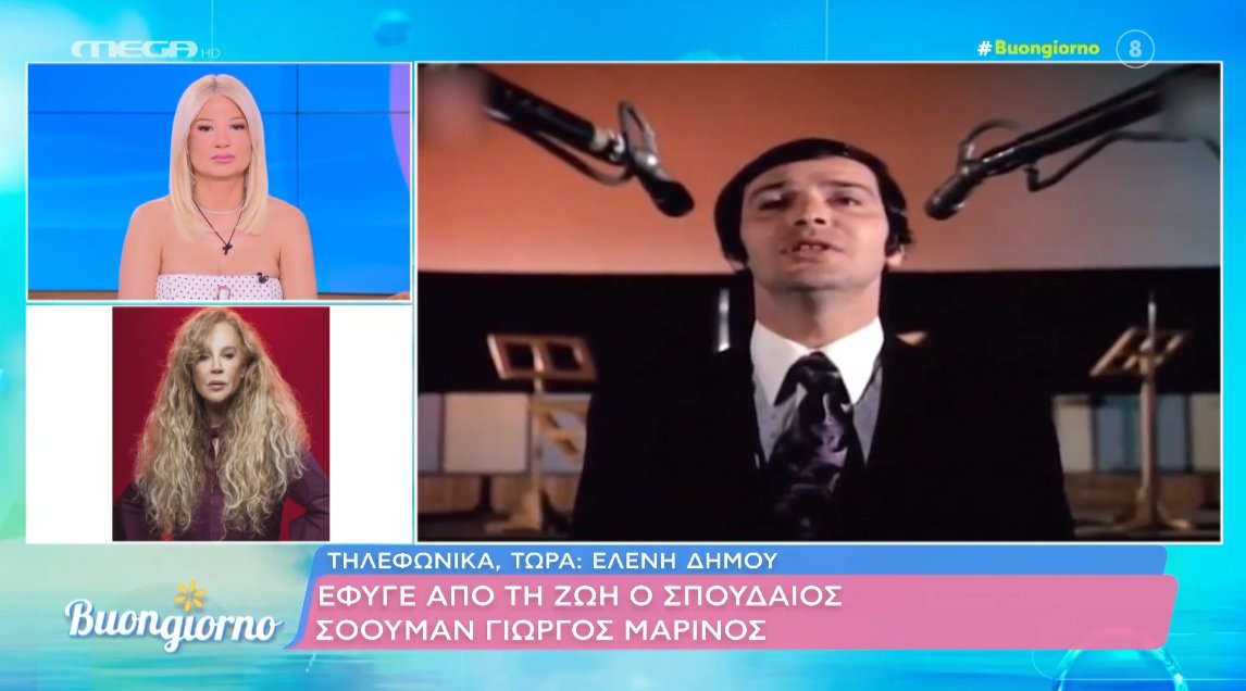 Η τραγουδίστρια, Ελένη Δήμου, μίλησε στην εκπομπή «Buongiorno» για την απώλεια του Γιώργου Μαρίνου.