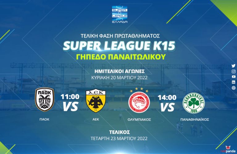 Στο Γήπεδο Παναιτωλικού θα διεξαχθεί η Τελική Φάση (Final Four) του Πρωταθλήματος Super League K15 2021-22, την Κυριακή 20 και την Τετάρτη 23 Μαρτίου 2022.