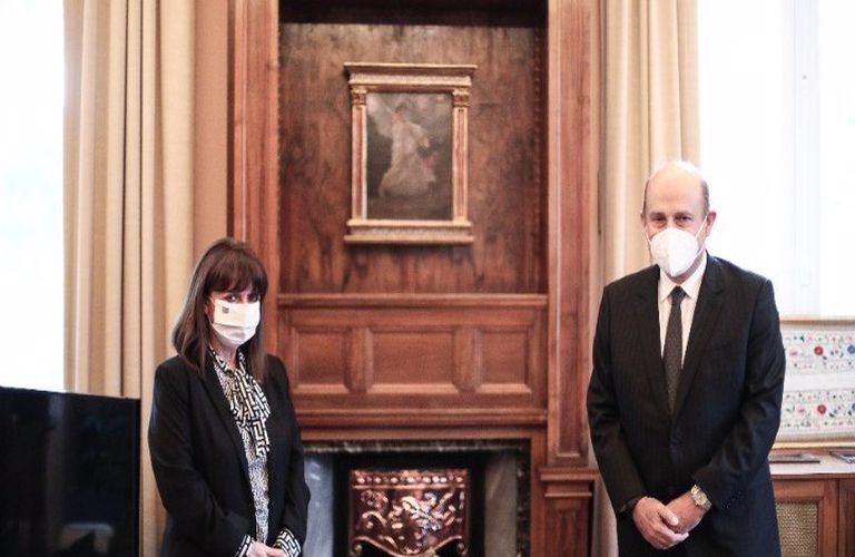 Η Πρόεδρος της Δημοκρατίας, παραλαμβάνοντας τον πίνακα που δώρισε ο Δημήτρης Γκέρτσος, τόνισε: «Με μεγάλη χαρά και συγκίνηση υποδεχόμαστε σήμερα στο Προεδρικό Μέγαρο τον πίνακα του Νικολάου Γύζη “Δόξα”, δωρεά του ως σήμερα κατόχου του έργου, κ. Δημήτρη Γκέρτσου».