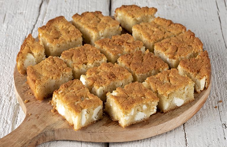 Αφαιρούμε το ταψί από τον φούρνο, κόβουμε σε κομμάτια, και σερβίρουμε.
