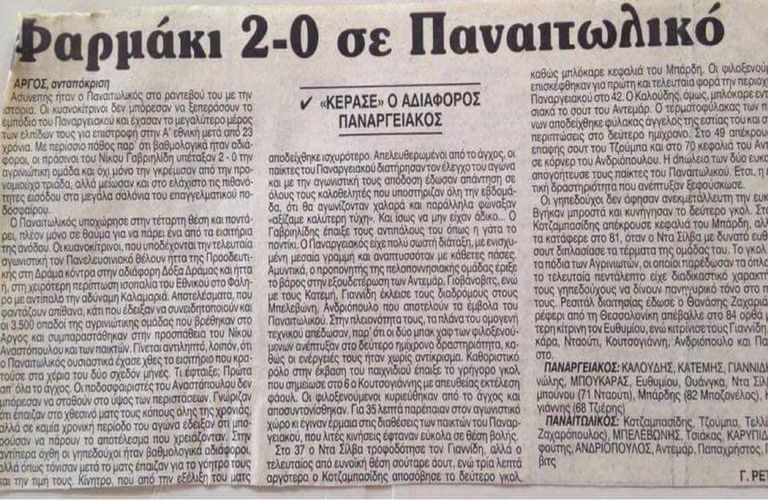24 χρόνια πέρασαν από την χαμένη ευκαιρία του Παναιτωλικού να ανέβει στην Α΄Εθνική. Ήταν μια μεγάλη εκδρομή περίπου 3.500 φίλων της ομάδας στο Άργος που όμως δεν εξελίχθηκε όπως όλοι ανέμεναν.