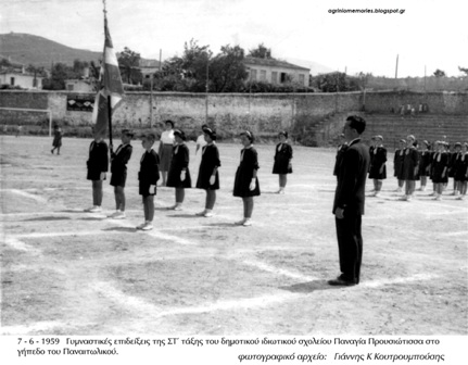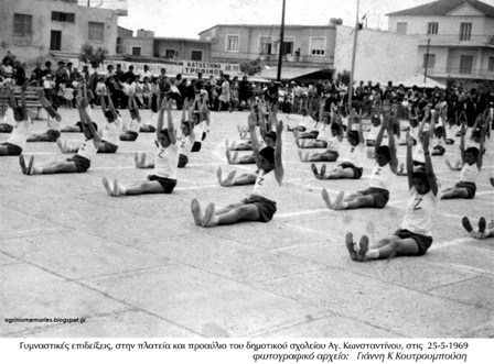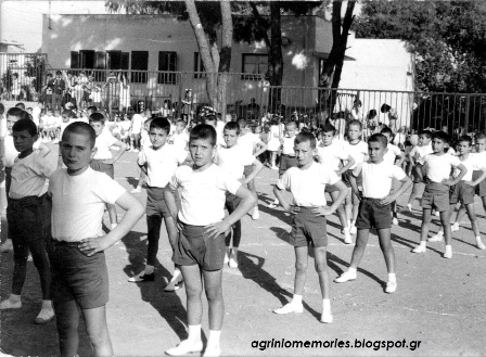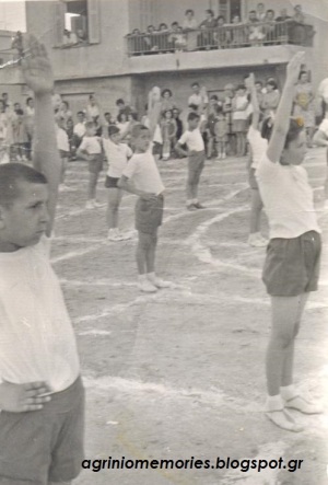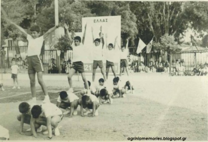 Το καλοκαίρι λίγο πριν το τέλος της σχολικής χρονιάς, οι μαθητές Δημοτικού και Γυμνασίου επιδείκνυαν τις γυμναστικές τους δεξιότητες μπροστά σε κοινό. Συγγενείς και μη, δάσκαλοι, ο διευθυντής του σχολείου και πολλές φορές επίτιμοι καλεσμένοι, όπως ο Δήμαρχος και ο παπάς της περιοχής, πήγαιναν να παρακολουθήσουν το σχολικό γεγονός της χρονιάς….