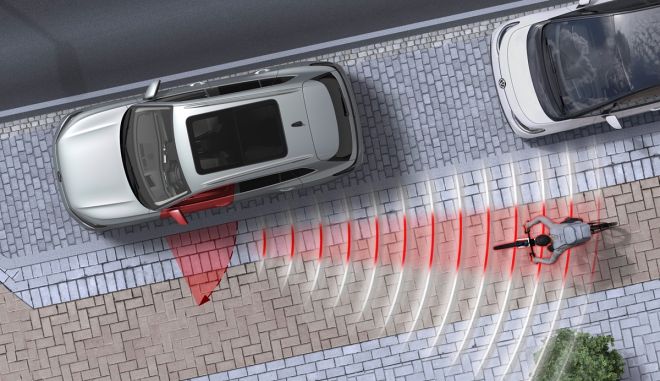 Εάν πλησιάζει ένας χρήστης του δρόμου, ενεργοποιείται αυτόματα μια ένδειξη LED στον εξωτερικό καθρέφτη ως πρώτο στάδιο προειδοποίησης. Εάν παρ’ όλα αυτά ένα από τα χερούλια της πόρτας έχει ήδη τραβηχτεί η πόρτα παρεμποδίζεται για σύντομο χρονικό διάστημα προκειμένου να μην ανοίξει. Εάν τελικά η πόρτα ανοίξει, ακούγεται ένα προειδοποιητικό σήμα.