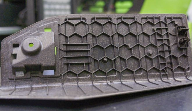 Αποτελούμενη κατά 40% από ίνες και κατά 60% από ανακυκλωμένο πλαστικό πολυπροπυλενίου, η ουσία που προέκυψε θερμάνθηκε και μορφοποιήθηκε με έγχυση στο σχήμα του επιλεγμένου εξαρτήματος. Μαζί με τους εταίρους της σε όλο τον κόσμο, η Ford επιτυγχάνει μετρήσιμα οφέλη σε σχέση με φιλόδοξους στόχους περιβαλλοντικής βιωσιμότητας.