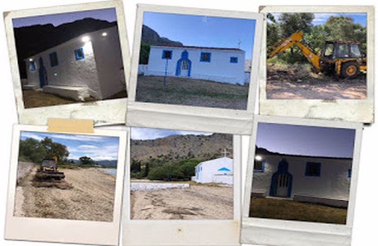 Καθαρισμοί των εξωτερικών χώρων του μικρού αυτού ναού, εξωτερικό βάψιμο με τα φωτεινά χρώματα άσπρο και γαλάζιο και φωταγώγηση του, με το αποτέλεσμα μέρα και βράδυ να είναι εξαιρετικό.