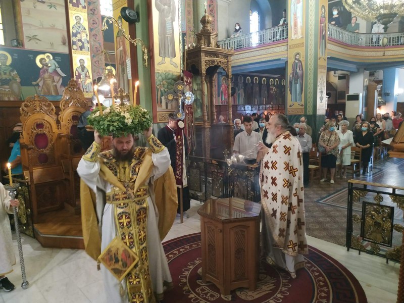 Την κυριώνυμο ημέρα της εορτής τελέσθηκε Όρθρος και Πανηγυρική Θεία Λειτουργία και το απόγευμα διαβάστηκαν οι Χαιρετισμοί του Τιμίου Σταυρού.