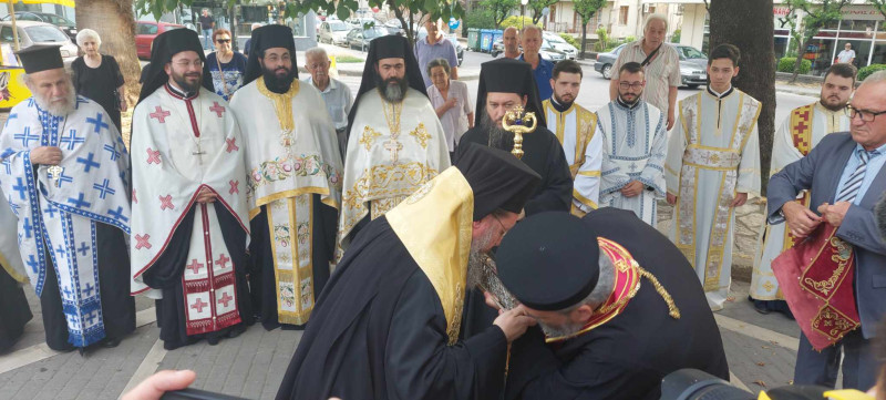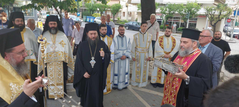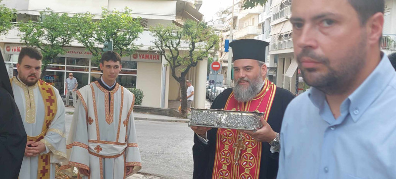 Το Ιερό Λείψανο υποδέχθηκε ο Σεβασμιότατος Μητροπολίτης Αιτωλίας και Ακαρνανίας κ.κ. Δαμασκηνός, επικεφαλής του Ιερού Κλήρου, των εκπροσώπων των Τοπικών Αρχών και του πιστού λαού της Ενορίας και της πόλεως.