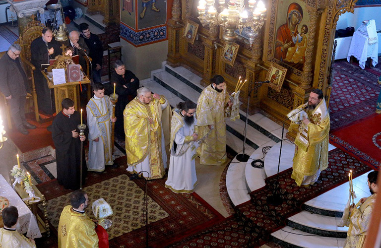 Κατά τη διάρκεια της Θείας Λειτουργίας τέλεσε την πρώτη του χειροτονία, χειροτονώντας στον βαθμό του Πρεσβυτέρου τον μέχρι σήμερα διάκονο του Ναού π. Μιχαήλ Βραχά.