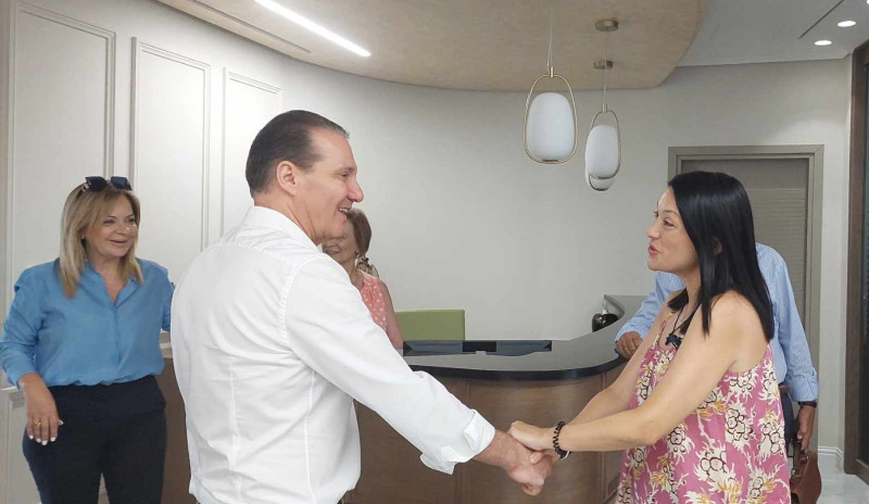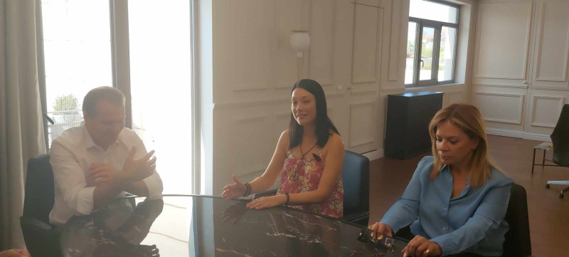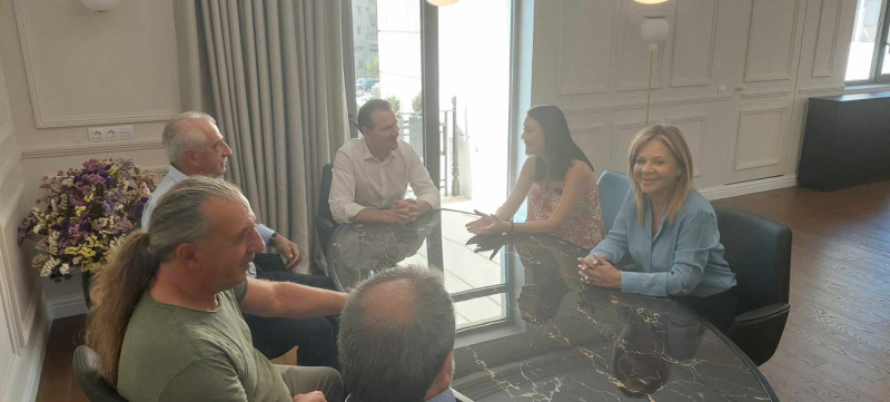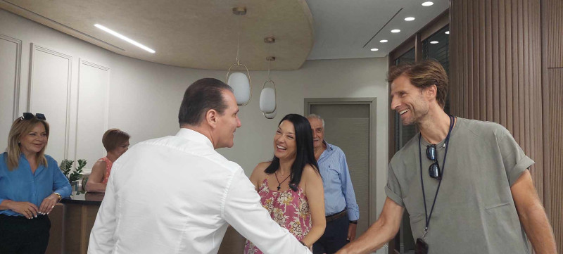 Σε εγκάρδιο κλίμα συναντήθηκε με τον Πρόεδρο Θωμά Κουτσουπιά παρουσία της Βουλευτή του Κινήματος στην Αιτωλοακαρνανία Χριστίνας Σταρακά, του Γραμματέα της Νομαρχιακής Γιώργου Ζήσιμου και άλλων τοπικών στελεχών ενώ συνοδευόταν από το σύζυγό της, γνωστό ηθοποιό Μάξιμο Μουμούρη που πρωταγωνιστεί με επιτυχία στη «Γη της Ελιάς».