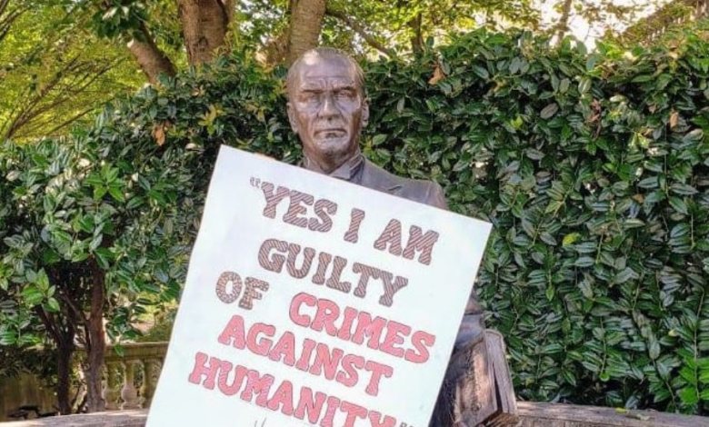 Η.Π.Α.: Κρέμασαν επιγραφές κατά της γενοκτονίας των Ποντίων σε άγαλμα του Κεμάλ